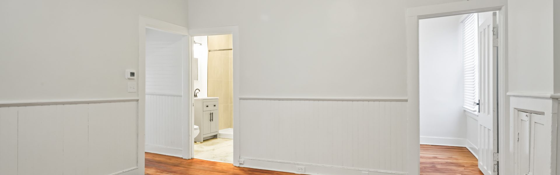 Stylish 2 bed/1 bath 2nd floor unit featuring a full tub/shower and updated stainless steel appliances. The elegance of the cabinetry beautifully contrasts with white walls, complemented by generous natural lighting streaming through ample windows.